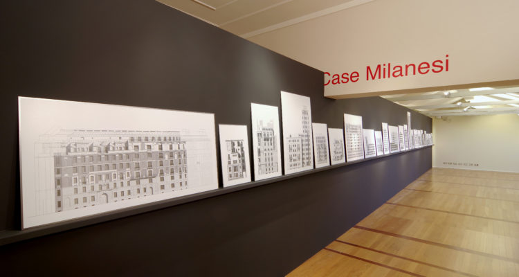 Nucleo centrale della mostra una grande parete espositiva in cui sono poste fianco a fianco le ventitré abitazioni milanesi nella loro diversità di stile e riconoscibilità, con prospetti in scala 1:75. Sulla parete opposta, le case dialogano con le piante e la descrizione fotografica dei materiali, dando l’impressione di poterle “toccare con mano”.