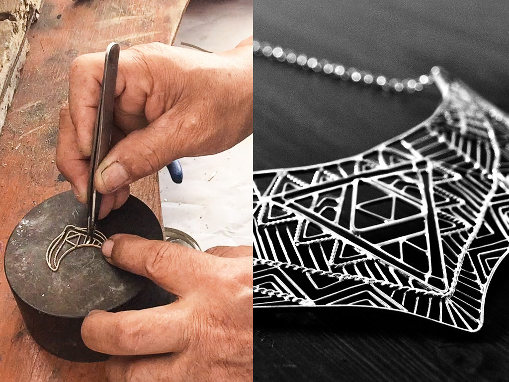 Le mani magiche di Alfredo Inga Alamo, artigiano di Catacaos, Perù. Kosi (preziosa), collezione Illari (alba), Credits: Carolina Poch