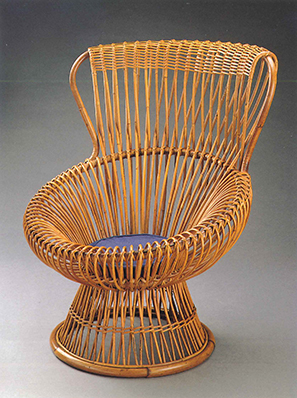 La leggerezza avvolgente della poltrona Margherita in vimini e bambù, (1950-59 produzione Vittoria Bonacina) rimane un archetipo poetico e passionale, con un’originalità in bilico tra tradizione ed esotismo, che sembra allontanarsi dalla radicalità del razionalismo, come lo stesso Le Corbusier aveva sconfessato alla fine della sua vita, per recuperare una morfologia ancestrale. Franco Albini riassume e risolve questo conflitto formale ed etico?