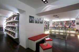 Il primo progetto di cui mi sono occupata per la Feltrinelli, che è stato forse quello più intenso dal punto di vista culturale, è quello di via del Babuino a Roma. La libreria è stata ristrutturata intorno al 2001, oramai diventata obsoleta, Non posso dimenticare quando sono stata chiamata per la progettazione degli spazi di via del Babuino e il primo sopralluogo nei locali: si respiravano ancora i tempi delle sommosse, la sua forte tradizione storica e l’importante passato letterario di questi locali.
