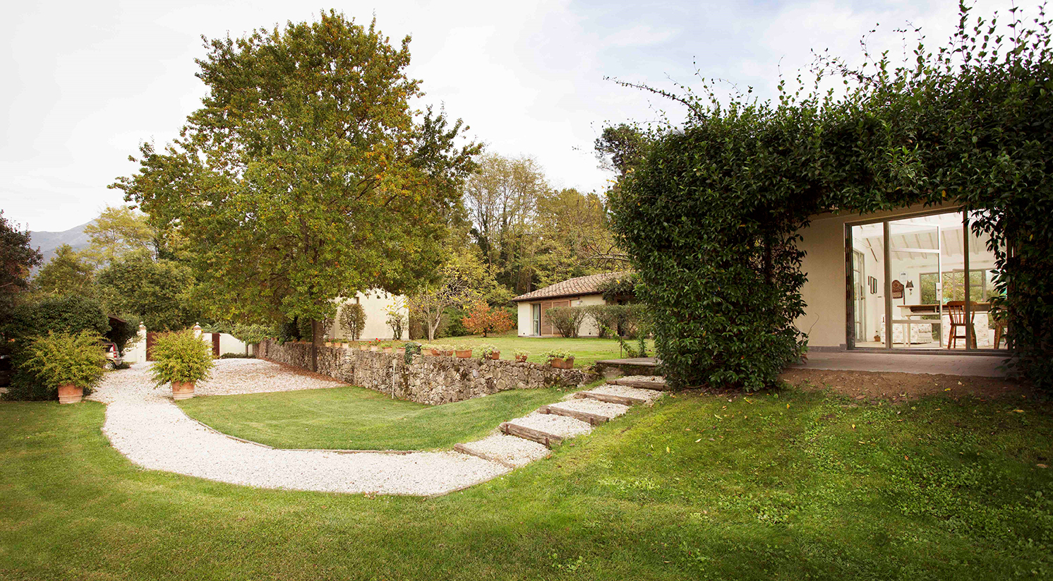 Tra i progetti privati ho visto quello presentato su un numero di Gardenia del 2017 in cui il verde si amplifica in un gioco di specchi ed entra nel vivere quotidiano attraverso la vetrata scorrevole che dà sulla veranda.
